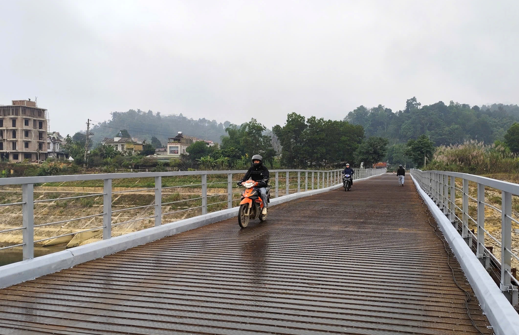 Cầu sắt hoạt động trở lại đã tạo điều kiện thuận lợi cho việc đi lại giao thương hàng hóa của người dân xã Nà Hang