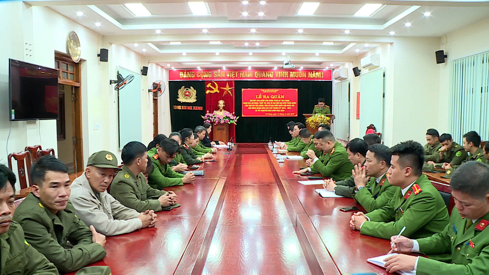 Tại buổi lễ, lãnh đạo Công an xã đã quán triệt mệnh lệnh của Giám đốc Công an tỉnh về mở đợt cao điểm tấn công, trấn áp tội phạm trên địa bàn toàn tỉnh. Đồng thời triển khai kế hoạch và giao nhiệm vụ cụ thể cho các lực lượng. Trong đợt cao điểm, Công an xã Nà Hang sẽ tập trung lực lượng, phương tiện, áp dụng đồng bộ các biện pháp nghiệp vụ; kịp thời phát hiện, xử lý các đối tượng hình sự, ma túy, tội phạm kinh tế; ngăn chặn hoạt động của các đối tượng chống đối chính trị, tà đạo, lợi dụng dịp lễ tết để gây rối. Đồng thời đẩy mạnh tấn công trấn áp tội phạm trộm cắp, cờ bạc, tín dụng đen, đảm bảo an ninh chính trị, trật tự an toàn xã hội, giữ bình yên địa bàn phục vụ các sự kiện chính trị quan trọng của đất nước và để nhân dân vui Xuân, đón Tết an toàn, lành mạnh.