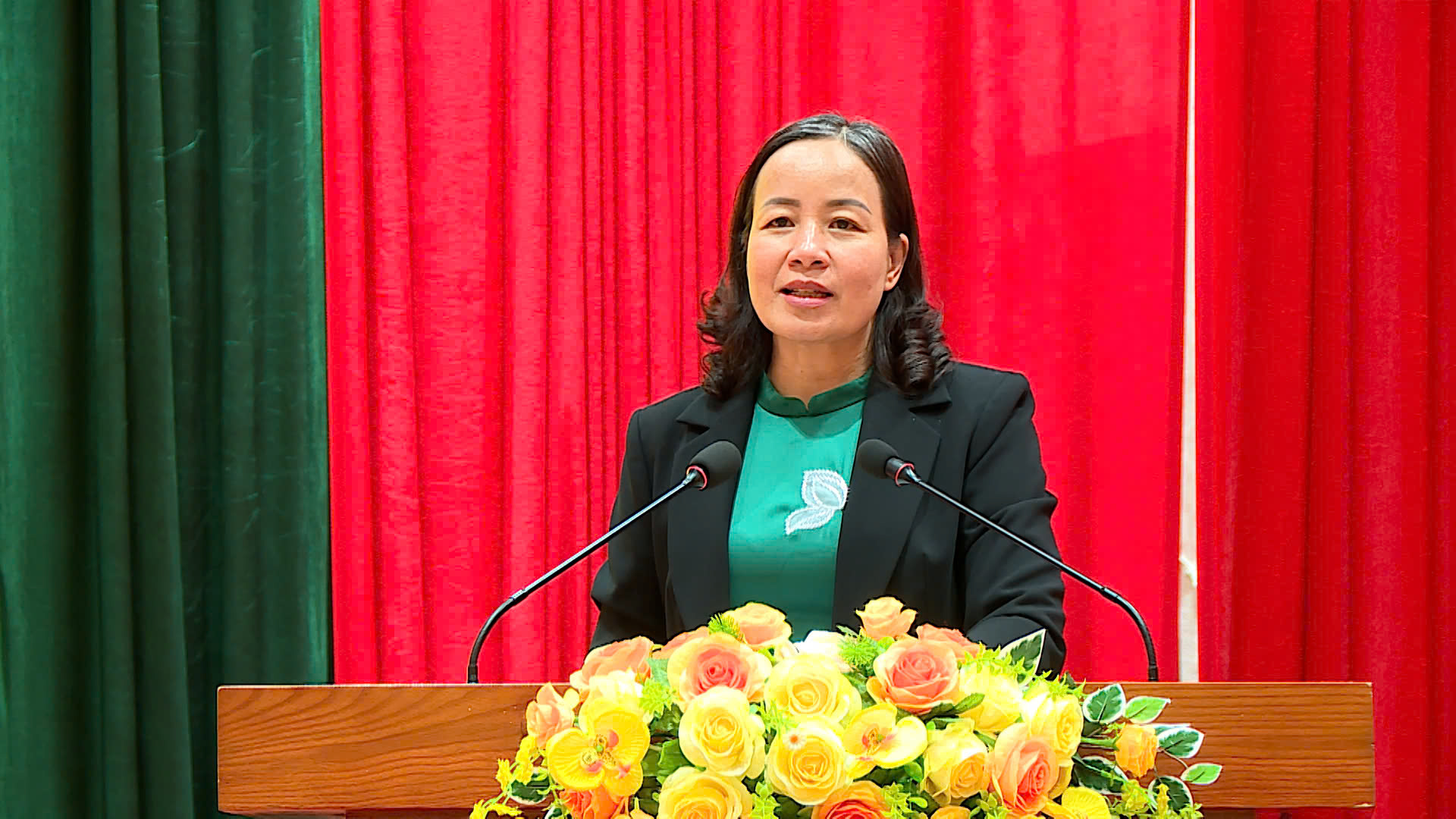 Đồng chí Nguyễn Thị Mến, Phó Bí thư Thường trực Đảng ủy, Chủ tịch HĐND xã, Giám đốc Trung tâm Chính trị Nà Hang phát biểu chỉ đạo đại hội