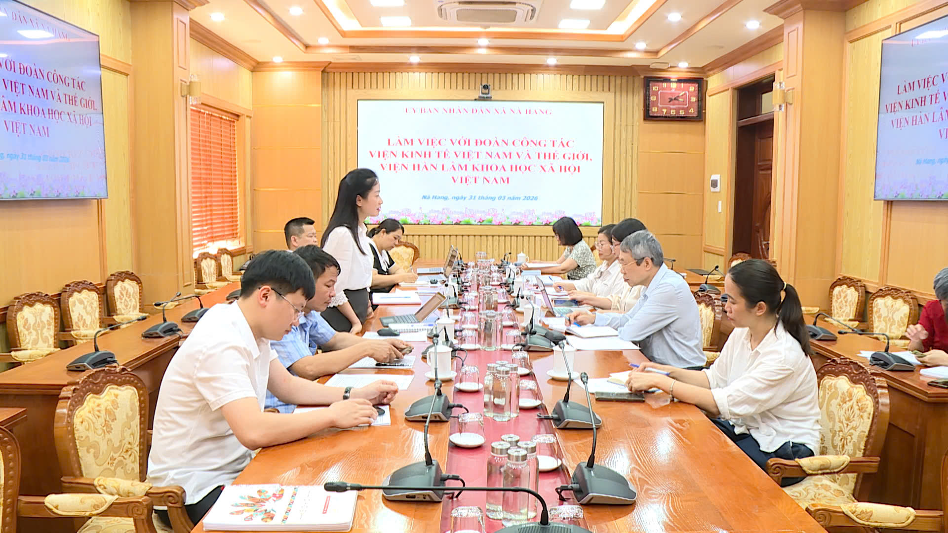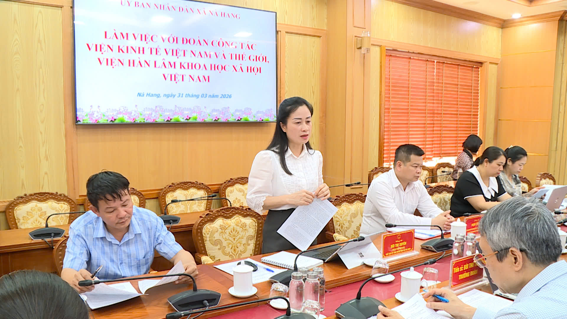 Thực hiện đề tài nghiên cứu về hoàn thiện các chính sách, giải pháp thúc đẩy du lịch nông nghiệp, chiều ngày 31/3, Đoàn công tác của Viện Kinh tế Việt Nam và Thế giới (thuộc Viện Hàn lâm Khoa học xã hội Việt Nam) do Tiến sĩ Bùi Thu Trang – Chủ nhiệm đề tài làm trưởng đoàn, cùng các thành viên là cán bộ, nghiên cứu viên của Viện đã có buổi làm việc tại xã Nà Hang.