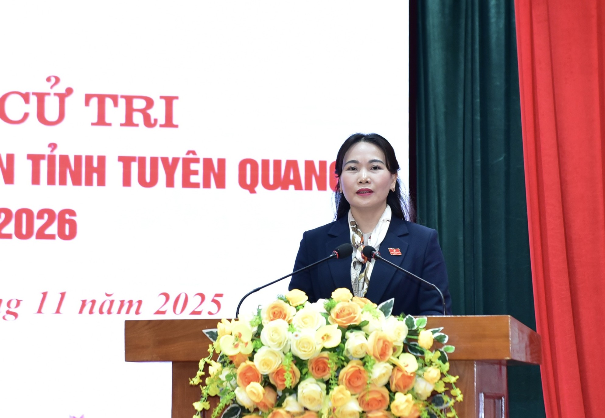 Phát biểu tại hội nghị, đồng chí Phó Bí thư Thường trực Đảng ủy UBND tỉnh Nông Thị Bích Huệ nhấn mạnh, các ý kiến của cử tri đều là những nguyện vọng chính đáng, thiết thực, liên quan trực tiếp đến đời sống Nhân dân và sự phát triển kinh tế - xã hội của địa phương. Đồng chí ghi nhận và đánh giá cao nỗ lực của cấp ủy, chính quyền xã trong thực hiện nhiệm vụ sau khi vận hành mô hình chính quyền địa phương 2 cấp; quan tâm chăm lo đời sống Nhân dân, nhất là các gia đình có hoàn cảnh khó khăn, bị ảnh hưởng bởi bão lũ, thiên tai. Đồng chí đề nghị cấp ủy, chính quyền xã quan tâm giải quyết, trả lời các vấn đề cử tri kiến nghị thuộc thẩm quyền một cách thấu đáo. Xã cần bám sát các mục tiêu, nhiệm vụ trọng tâm và các khâu đột phá của Nghị quyết Đại hội đại biểu Đảng bộ tỉnh lần thứ I, nhiệm kỳ 2025-2030; đẩy mạnh chuyển đổi số, nâng cao ý thức, tinh thần trách nhiệm và đạo đức công vụ trong thực thi nhiệm vụ của đội ngũ cán bộ, công chức; giải quyết kịp thời, đúng quy định các chế độ, chính sách cho người hoạt động không chuyên trách.