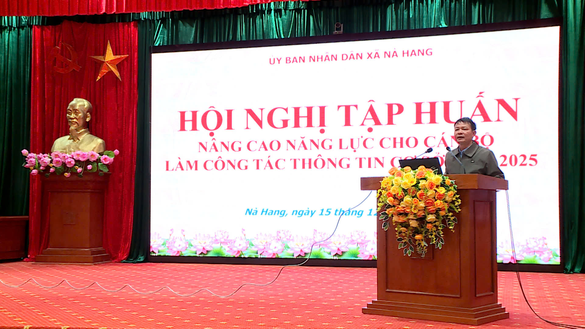 Ngày 15/12, Uỷ ban nhân dân xã Nà Hang tổ chức Hội nghị tập huấn nâng cao năng lực cho cán bộ làm công tác thông tin cơ sở năm 2025. Dự hội nghị có các đồng chí: Phạm Tiến Sỹ, Ủy viên Ban Chấp hành Đảng bộ xã, Phó Chủ tịch Uỷ ban nhân dân xã; Trần Thị Thoa, Ủy viên Ban Chấp hành Đảng bộ xã, Trưởng phòng Văn hóa – Xã hội xã. Tham gia tập huấn còn có các đồng chí bí thư chi bộ, trưởng thôn, trưởng ban công tác Mặt trận, bí thư chi đoàn các thôn trên địa bàn xã.