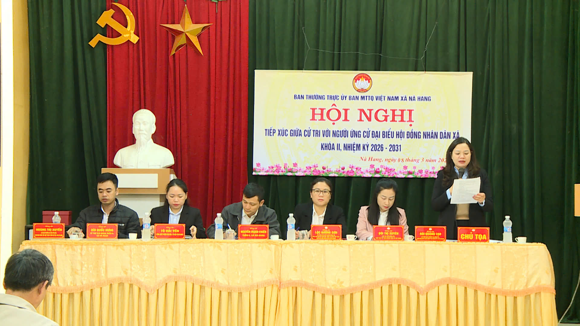 Sáng ngày 8/3, tại Nhà văn hóa thôn Nà Mỏ, Ban Thường trực Ủy ban MTTQ xã Nà Hang tổ chức Hội nghị tiếp xúc cử tri để những người ứng cử đại biểu Hội đồng nhân dân xã khóa II, nhiệm kỳ 2026 – 2031 thuộc đơn vị bầu cử số 1 gặp gỡ, trình bày chương trình hành động và vận động bầu cử trước cử tri. Tham dự hội nghị có đại diện lãnh đạo Ủy ban MTTQ xã, các tổ chức đoàn thể, Ban lãnh đạo thôn cùng đông đảo cử tri trên địa bàn.