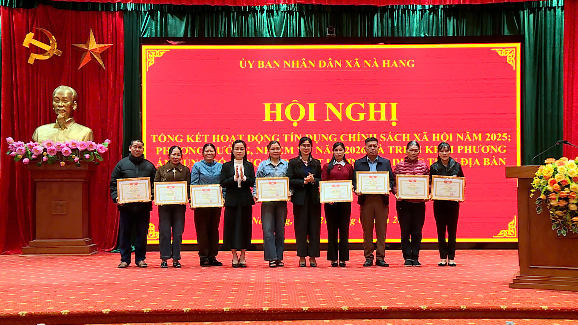 Nhân dịp này, Uỷ ban Mặt trận tổ quốc xã Nà Hang đã tổ chức khen thưởng cho các tập thể, cá nhân có thành tích tiêu biểu trong hoạt động tín dụng chính sách năm 2025.