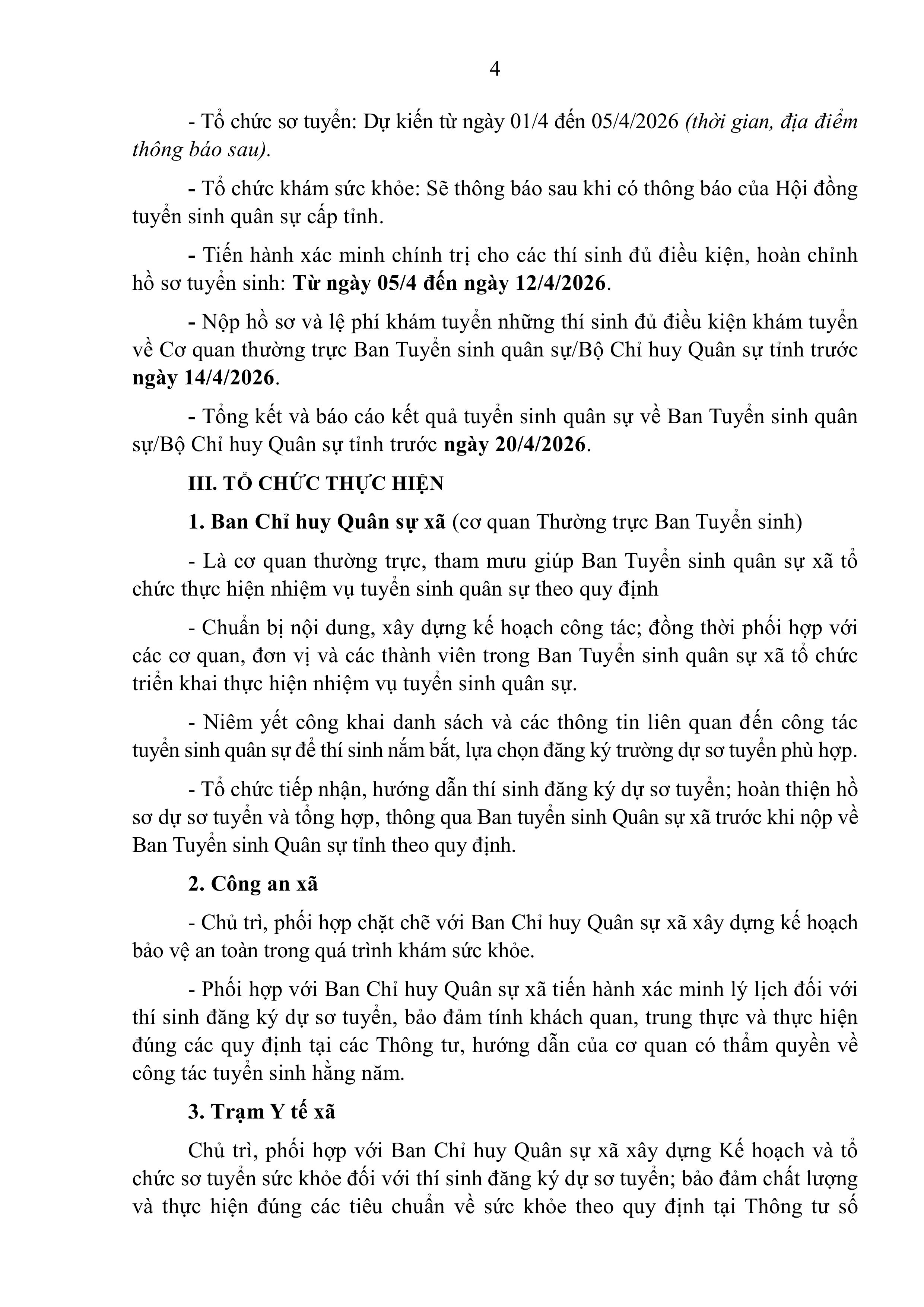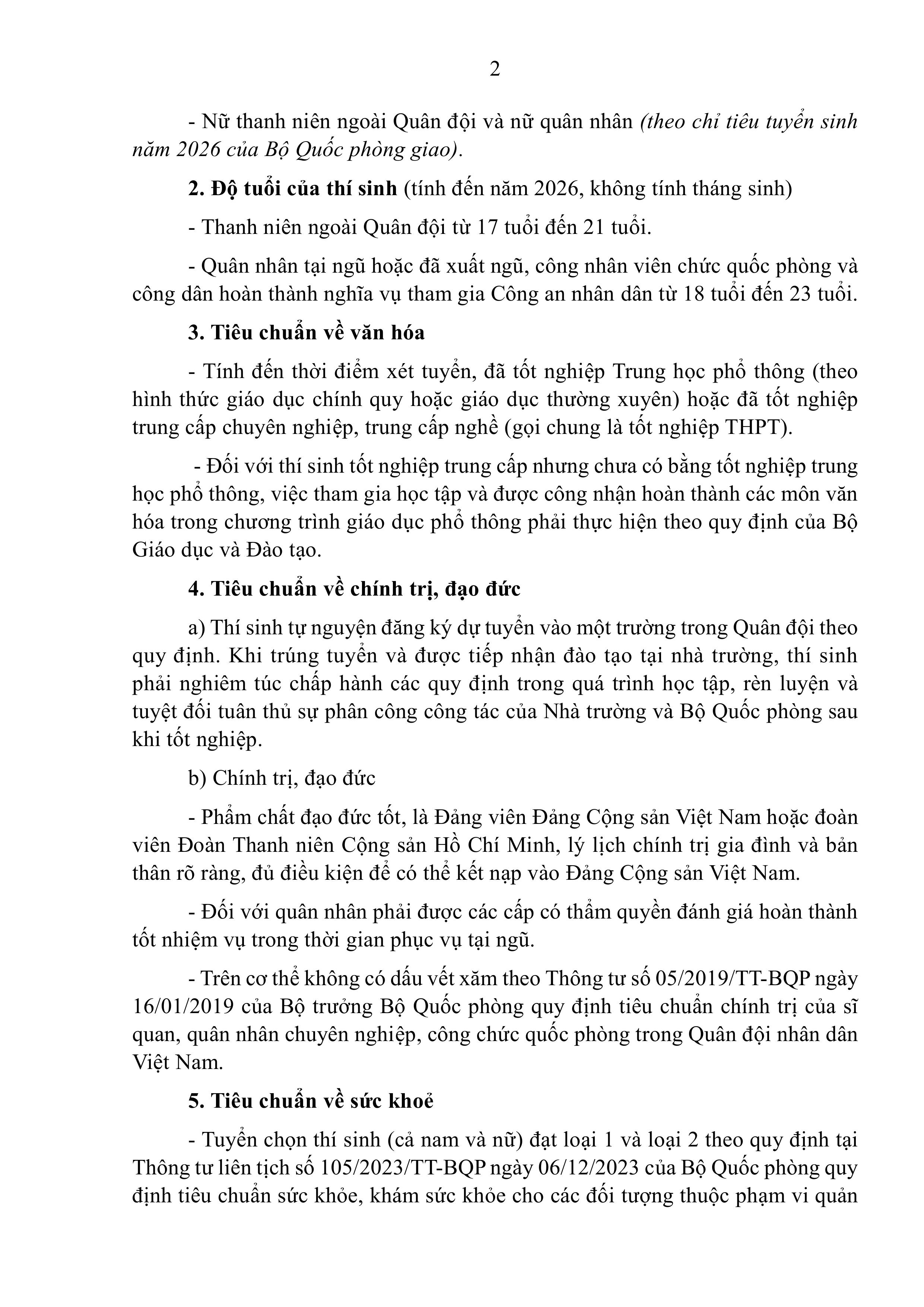 KẾ HOẠCH Tuyển sinh quân sự năm 2026