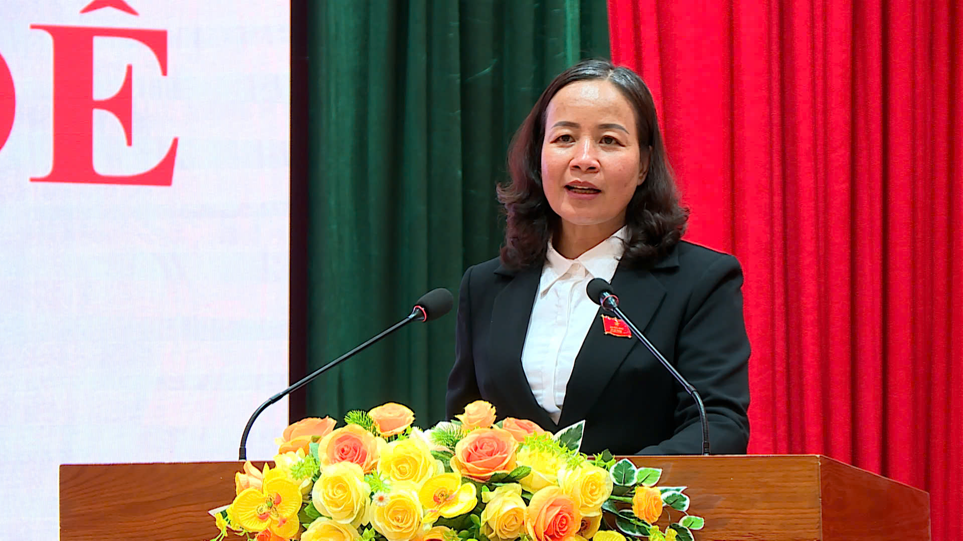 Đồng chí Nguyễn Thị Mến, Phó Bí thư Thường trực Đảng ủy, Chủ tịch Hội đồng nhân dân, Giám đốc Trung tâm chính trị Nà Hang phát biểu bế mạc kỳ họp