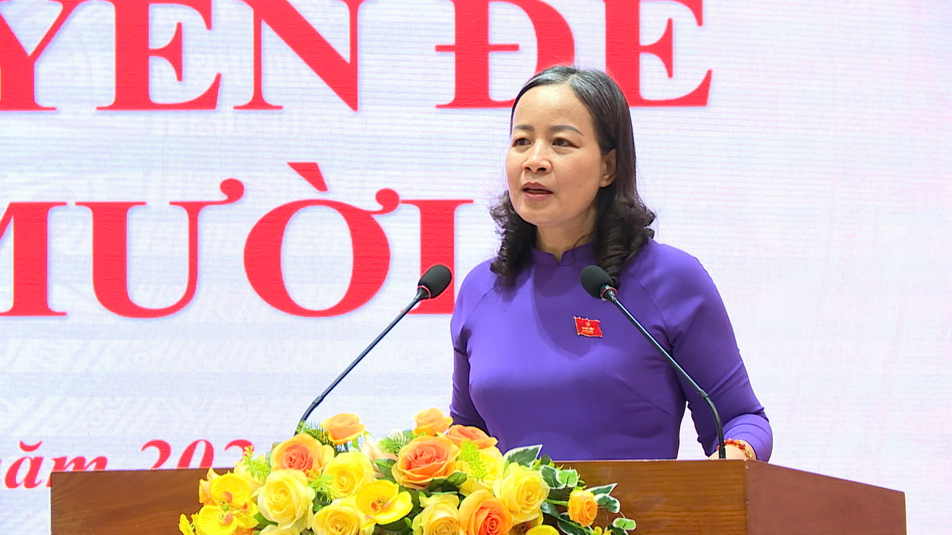 Đồng chí Nguyễn Thị Mến, Phó Bí thư Thường trực Đảng ủy, Chủ tịch Hội đồng nhân dân, Giám đốc Trung tâm chính trị Nà Hang phát biểu bế mạc kỳ họp