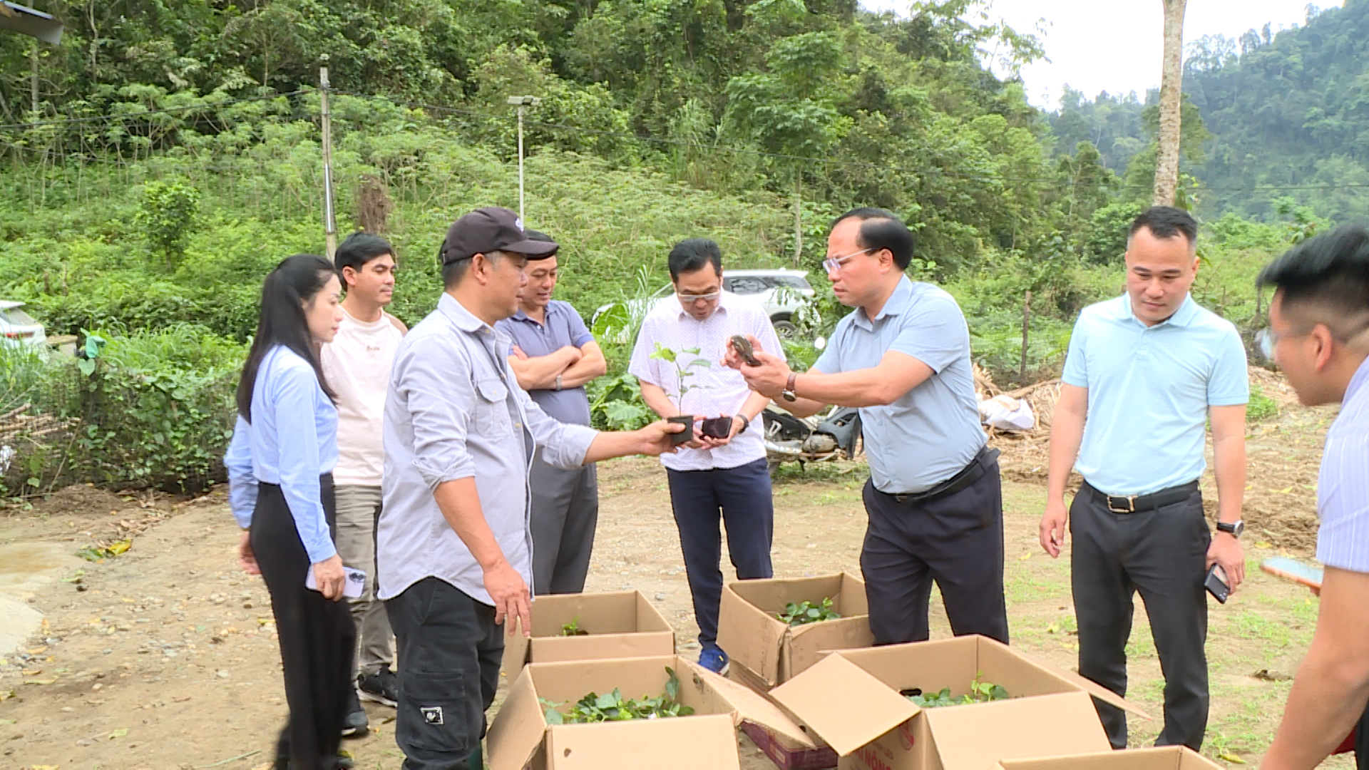 Đồng chí Âu Thế Thái, Tỉnh ủy viên, Bí thư Đảng ủy xã, Chủ tịch HĐND xã; và đồng chí Bùi Thị Xuyên, Phó Bí thư Đảng ủy, Chủ tịch UBND xã tự tay trồng những cây chanh leo đầu tiên của dự án