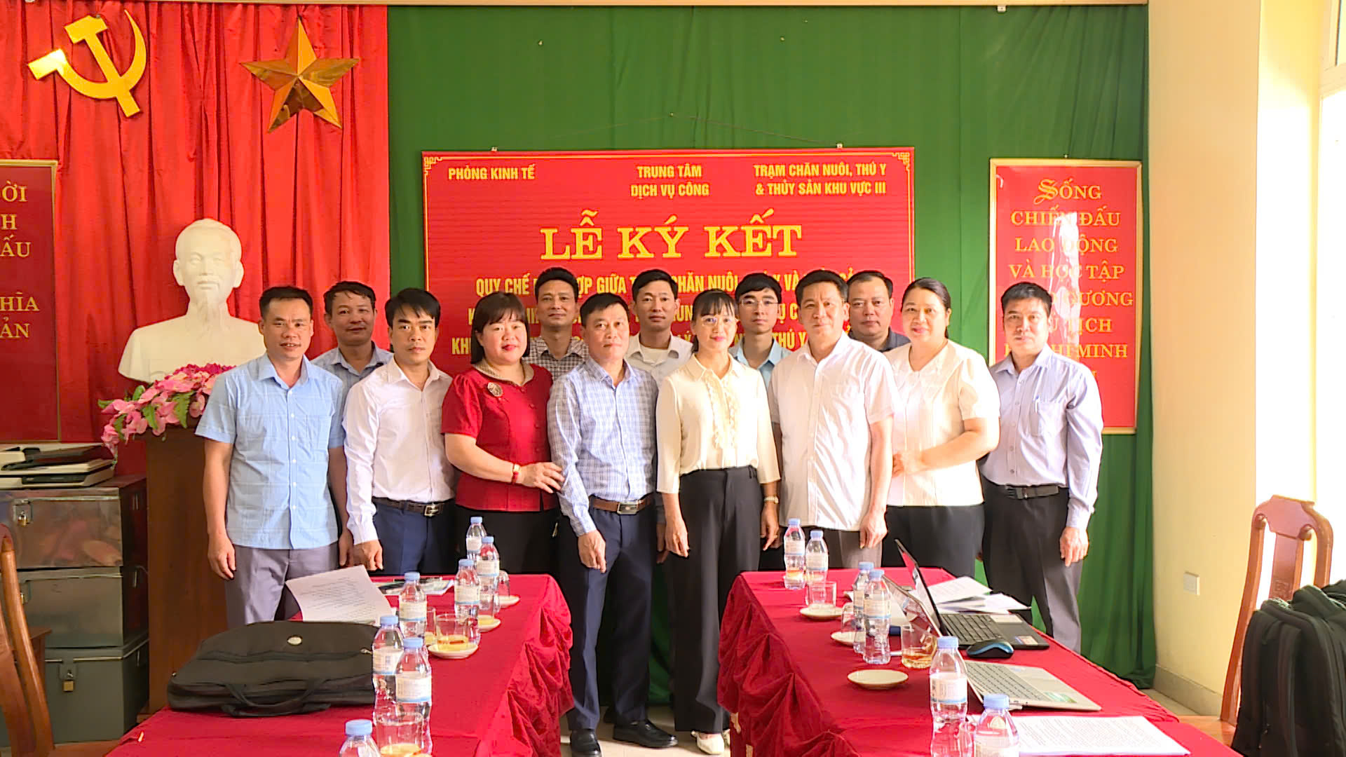 Ký kết Quy chế phối hợp giữa Trạm Chăn nuôi, Thú y và Thủy sản khu vực III với Phòng Kinh tế và Trung tâm Dịch vụ công xã Nà Hang