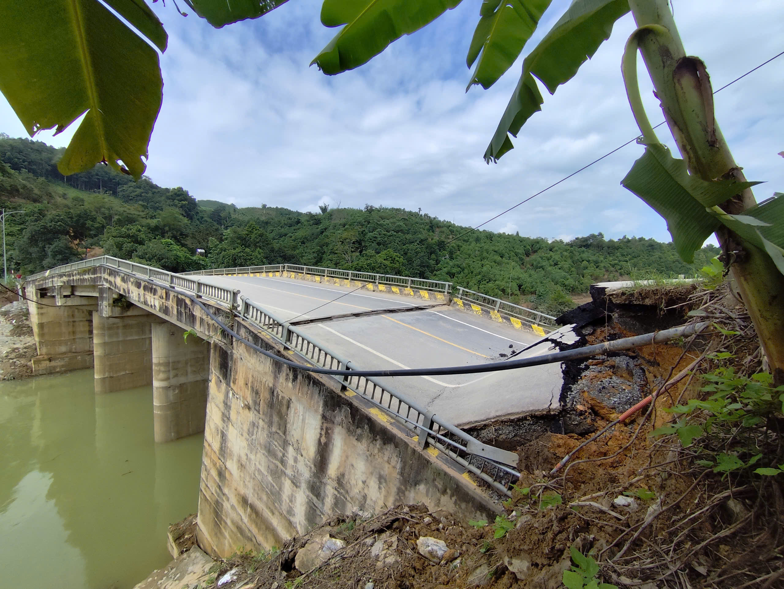 Trong đêm ngày 2/10, ngay sau khi nước lũ rút, tại khu vực đầu cầu Tát Luông, thôn 6, xã Nà Hang đã xảy ra sự cố lún sụt nghiêm trọng. Đầu cầu xuất hiện nhiều vết nứt lớn, phần mố cầu bị sụt gẫy rời khoảng 5m, dẫn đến tình trạng giao thông tê liệt. Hiện nay, mọi phương tiện và người dân đều không thể lưu thông qua đây. Sự cố đã gây ra nhiều khó khăn, làm gián đoạn đời sống sinh hoạt của bà con. Người dân không chỉ lo lắng về việc đi lại, mà còn canh cánh nỗi lo an toàn, bởi không biết khi nào công trình này có thể sập hẳn xuống dòng nước.