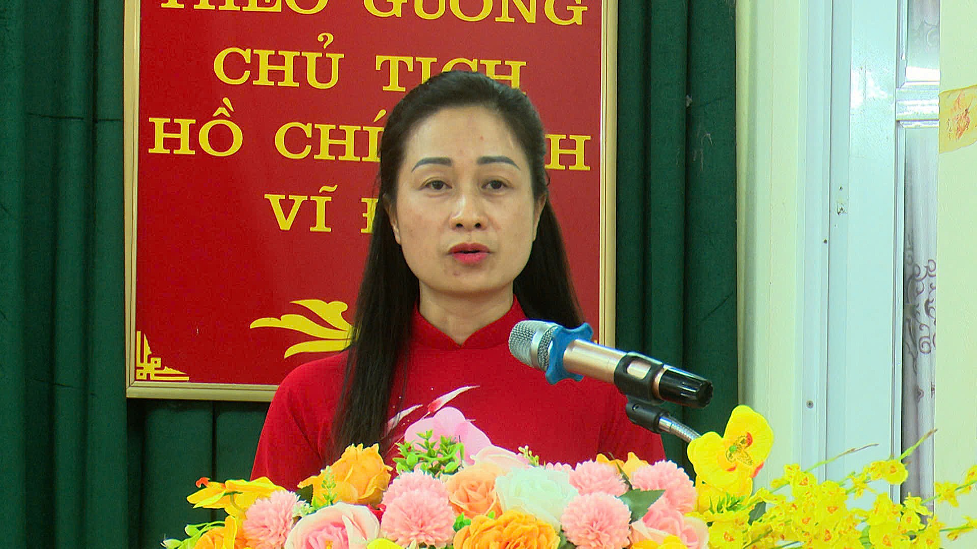 Đồng chí Bùi Thị Xuyên, Phó Bí thư Đảng ủy, Chủ tịch UBND xã phát biểu tại ngày hội