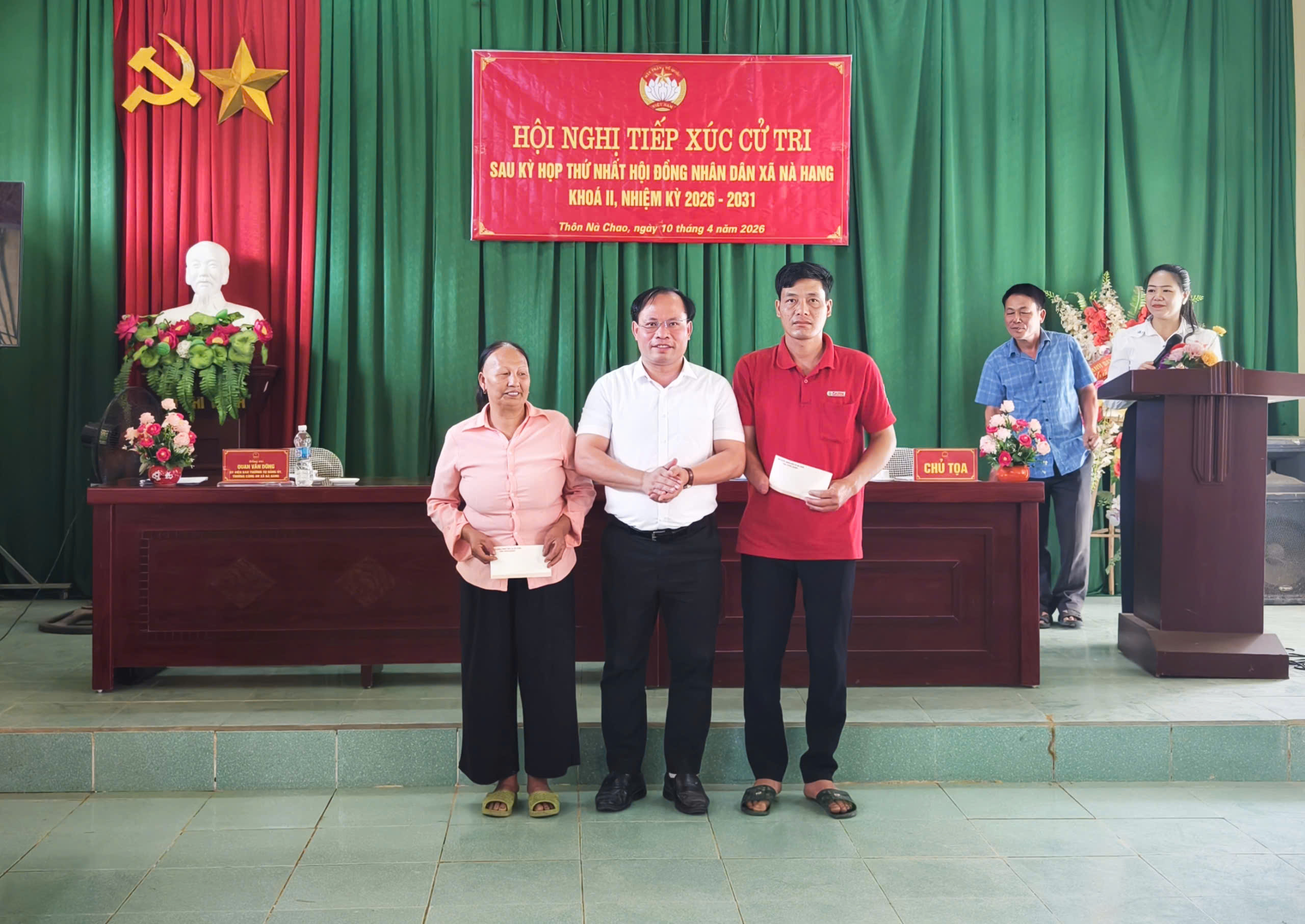 Sáng ngày 10/4, Tổ đại biểu số 03 HĐND xã Nà Hang đã tổ chức tiếp xúc cử tri sau Kỳ họp thứ nhất HĐND xã khóa II, nhiệm kỳ 2026–2031 tại thôn Nà Chao. Dự buổi tiếp xúc có đồng chí Âu Thế Thái, Ủy viên Ban Chấp hành Đảng bộ tỉnh, Bí thư Đảng ủy xã, Chủ tịch HĐND xã; cùng các thành viên Tổ đại biểu số 03 HĐND xã gồm các ông, bà: Quan Văn Dũng, Ủy viên Ban Thường vụ Đảng ủy, Trưởng Công an xã; Trần Thị Thoa, Ủy viên Ban Chấp hành Đảng bộ, Trưởng phòng Văn hóa – Xã hội xã.