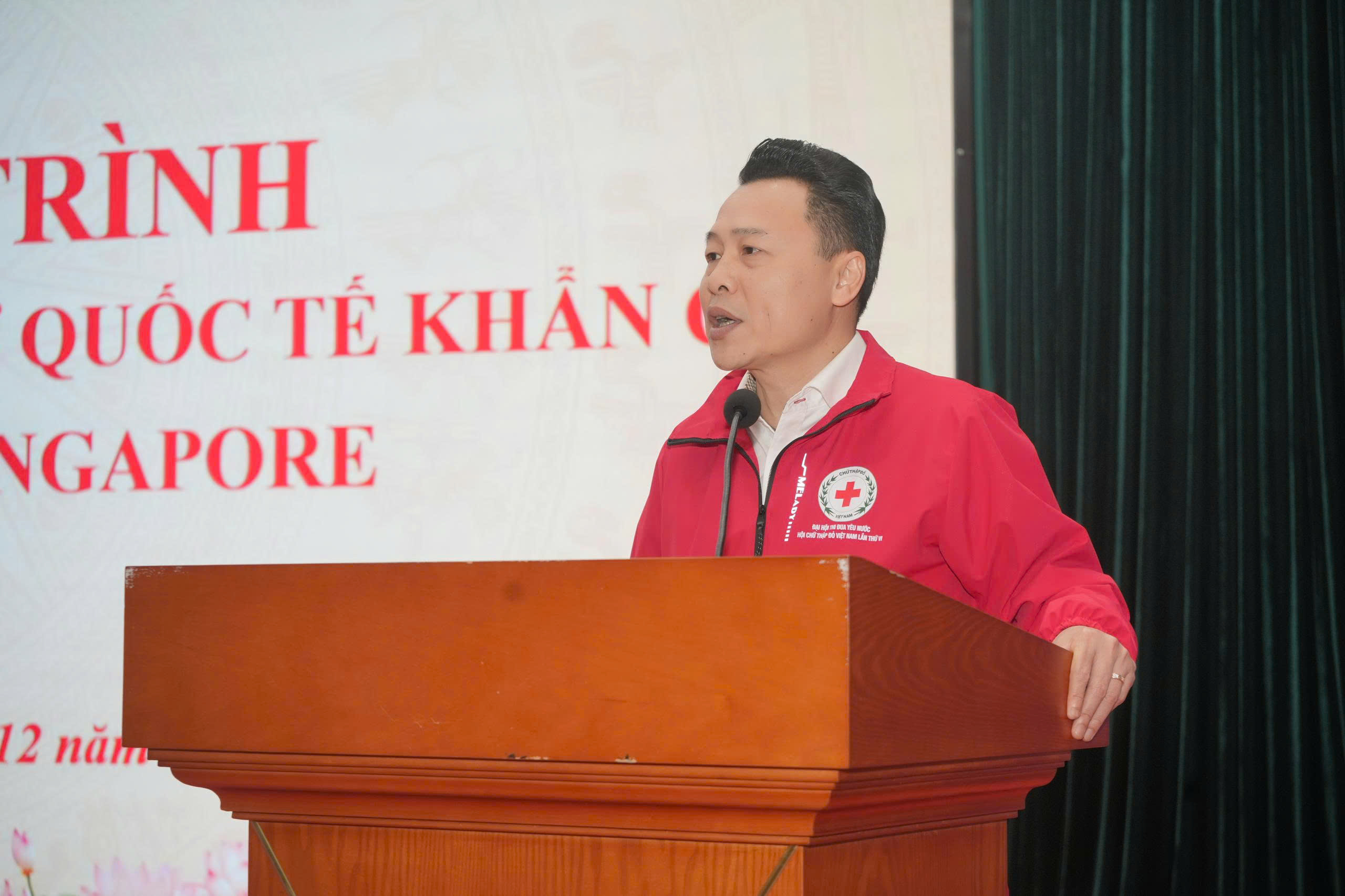 Đồng chí Nguyễn Hoàng Long, Chủ tịch Hội Chữ thập đỏ tỉnh Tuyên Quang phát biểu tại chương trình