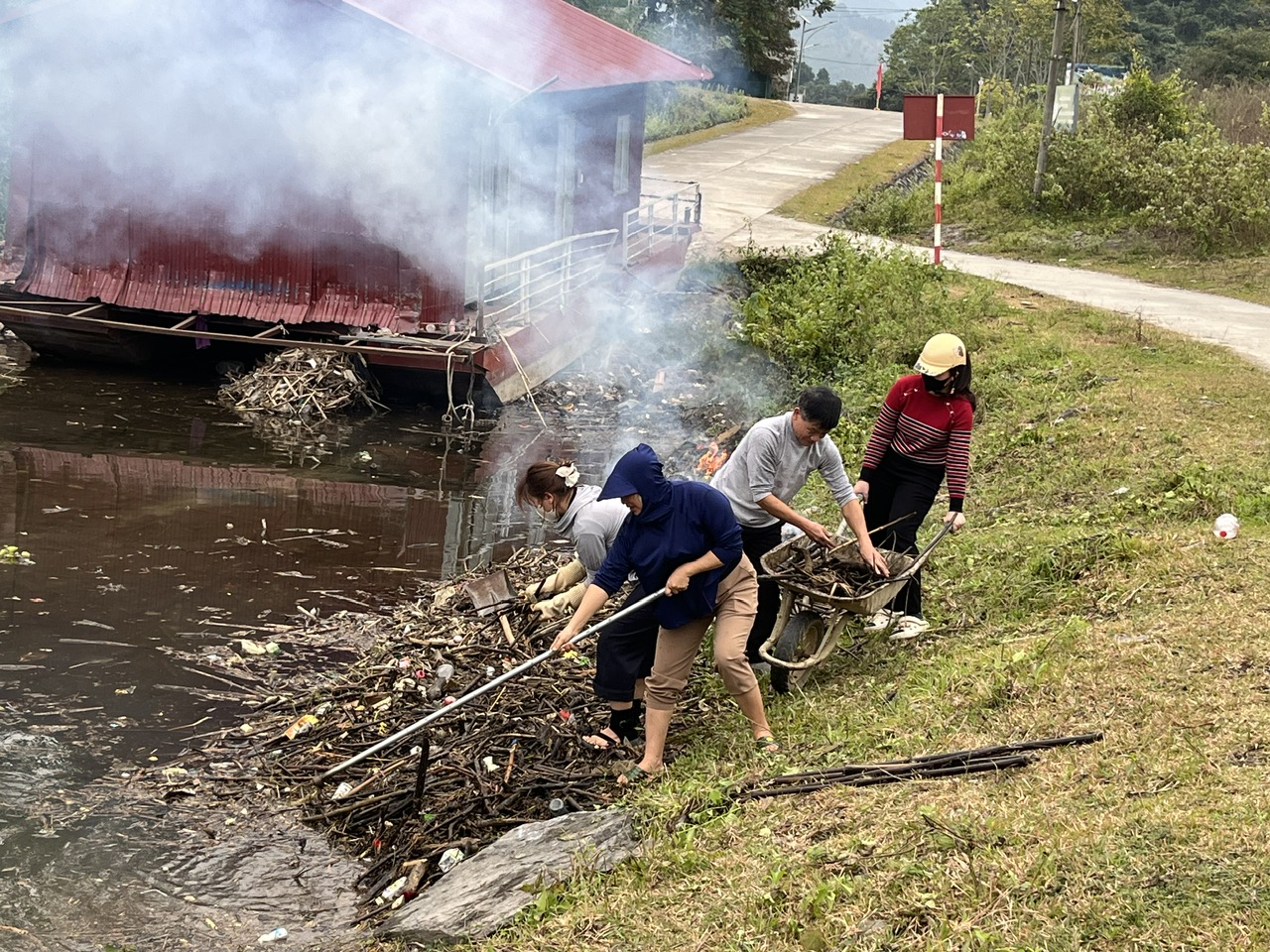 Tại buổi ra quân, cán bộ, viên chức và người lao động Trung tâm Dịch vụ Công xã Nà Hang đã huy động nhân lực, thuyền, lưới tiên hành thu gom, xử lý hơn hàng chục mét khối rác rác thải, góp phần tạo cảnh quan môi trường xanh – sạch – đẹp, bảo đảm mỹ quan và an toàn cho du khách.