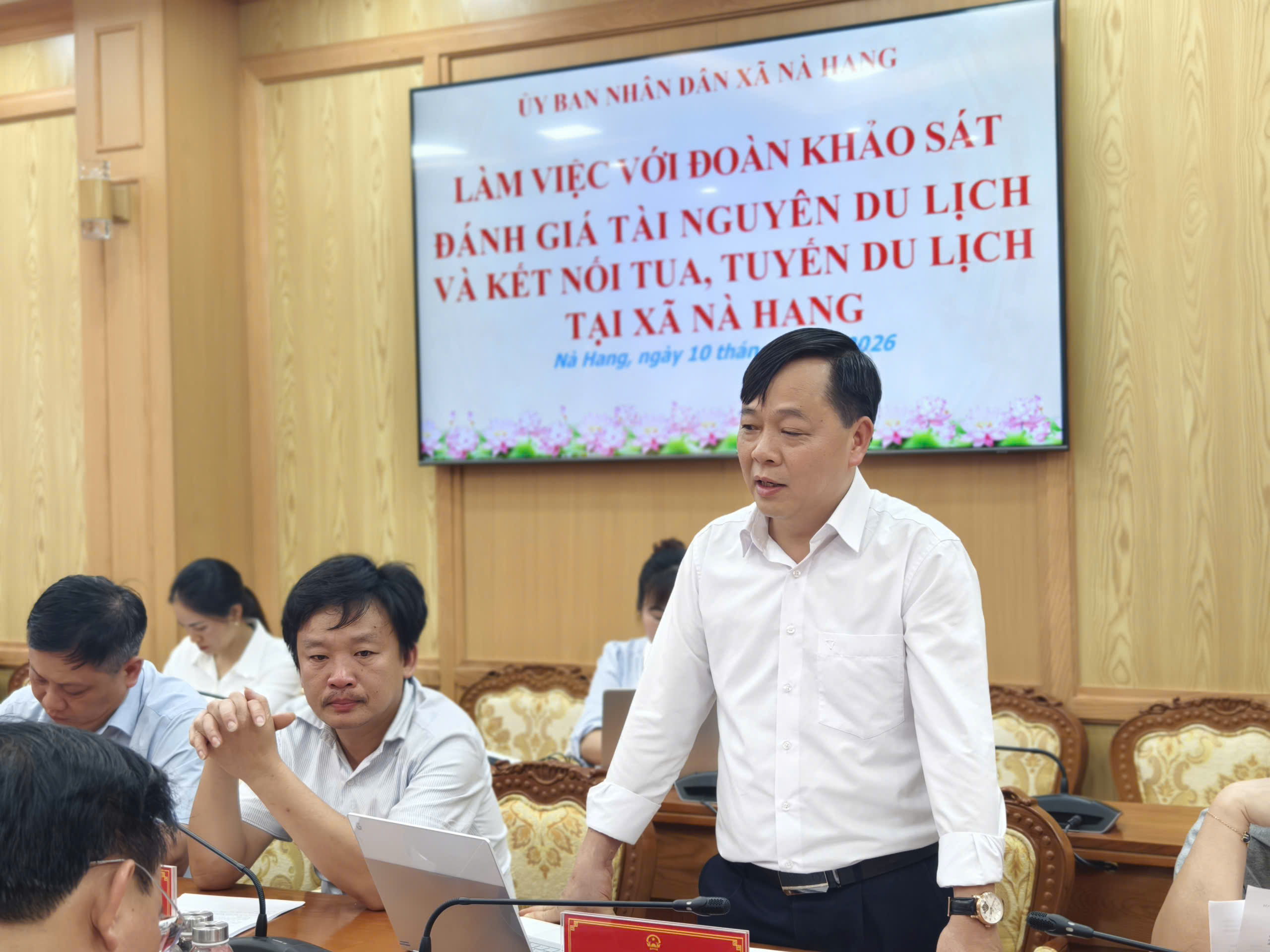 Phát biểu tại buổi làm việc, lãnh đạo xã Nà Hang nhấn mạnh: thời gian qua, địa phương đã quan tâm phát triển du lịch gắn với bảo tồn tài nguyên thiên nhiên và bản sắc văn hóa các dân tộc. Tuy nhiên, hoạt động du lịch vẫn còn mang tính tự phát, hạ tầng và dịch vụ chưa đồng bộ, cần có sự hỗ trợ, định hướng từ các cấp, ngành chuyên môn.
