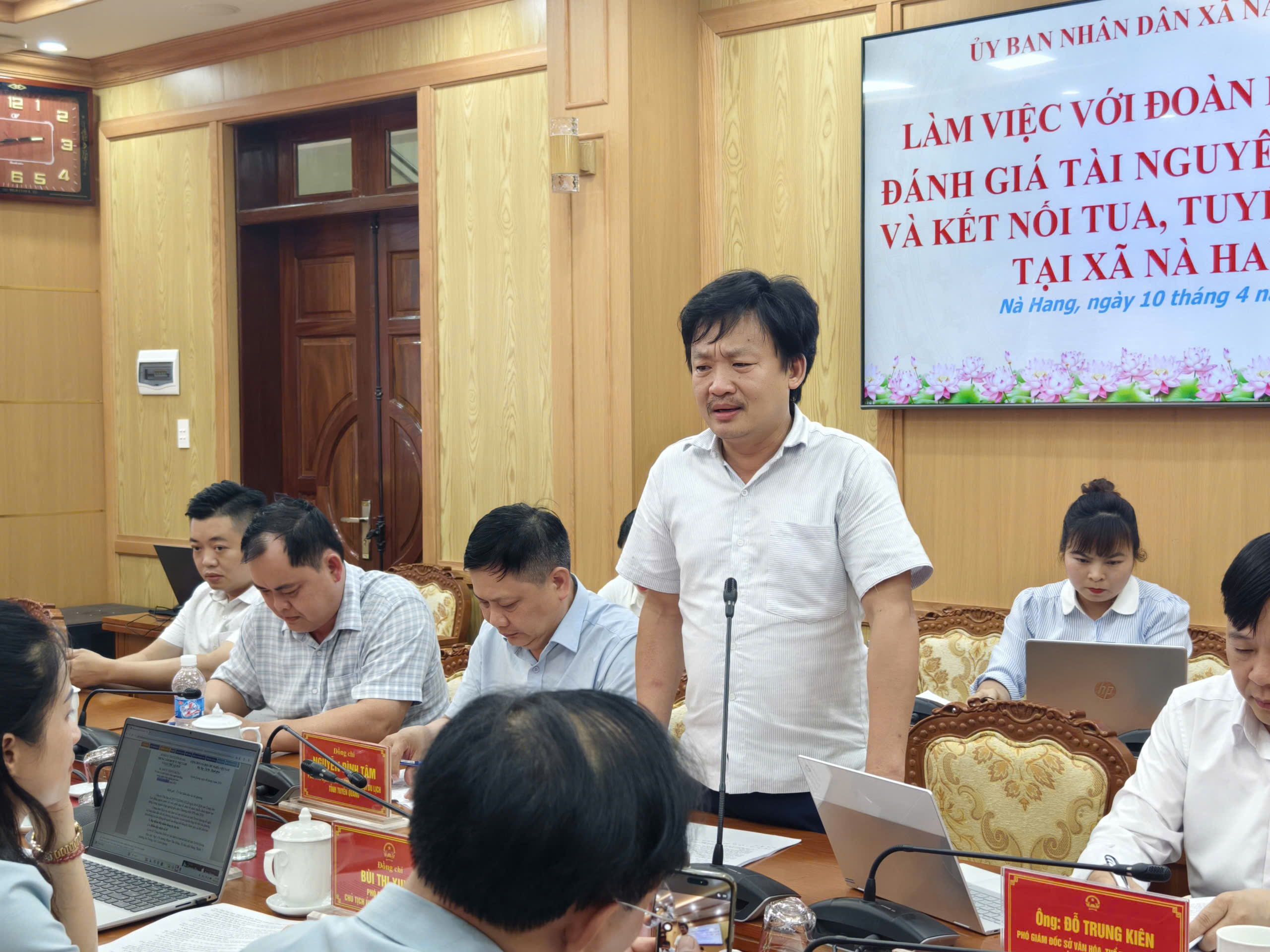 Chiều ngày 10/4, Ủy ban nhân dân xã Nà Hang tổ chức buổi làm việc với Đoàn khảo sát đánh giá tài nguyên du lịch và kết nối tua, tuyến du lịch trên địa bàn xã. Dự buổi làm việc, về phía Đoàn khảo sát có các đồng chí: Đặng Quốc Sử, Giám đốc Trung tâm Xúc tiến du lịch tỉnh; Đỗ Trung Kiên, Phó Giám đốc Sở Văn hóa, Thể thao và Du lịch tỉnh; Nguyễn Đình Tâm, Chủ tịch Thường trực Hiệp hội Du lịch tỉnh.